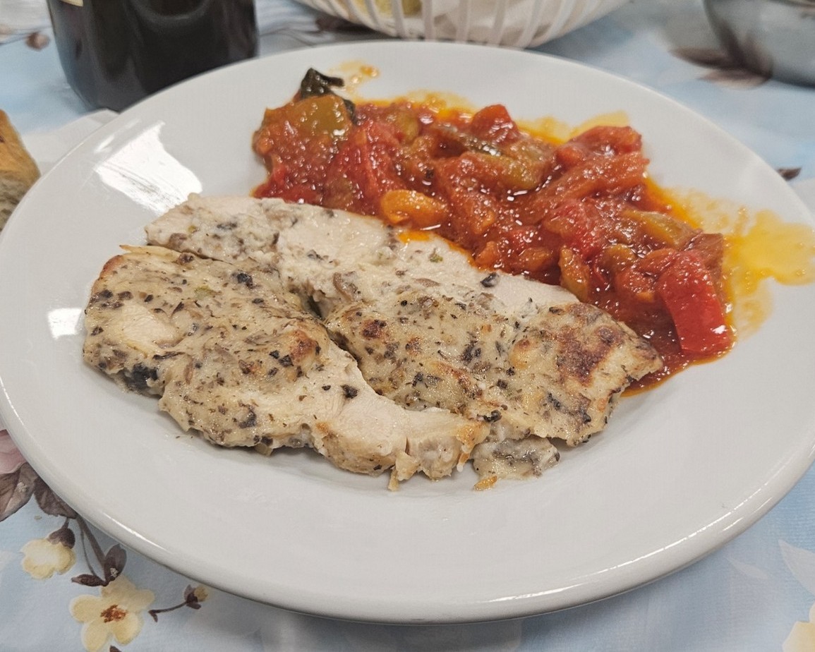 The food we were served was scrumptious, it might honestly have been the best food we had the whole week (though I might be biased). We were greeted with fresh bread on the tables and were offered traditional meatballs and a type of bread with pork in the dough (sadly I cannot recall the name). The first course was a beautiful mushroom lasagna with herbs in the pasta dough (which was quite filling already), and then we got to the main course which was a well seasoned chicken breast with some more mushrooms on it, with the side of a ratatuille-like vegetable stew. For dessert, we were given cornettos, though very few people had the stomach space for it at that point.